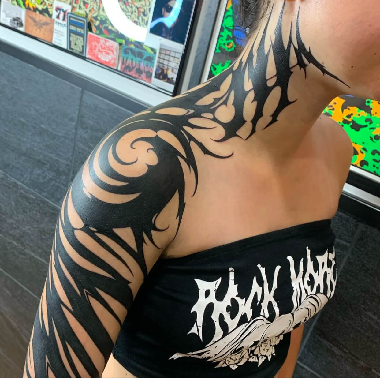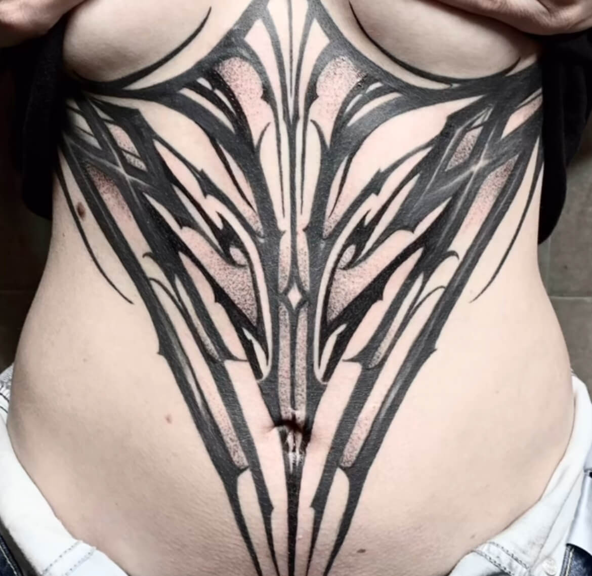 Hyena Tattoo se ha hecho notar por su estilo único, trabajando a mano alzada (freehand) para crear composiciones que desafían la imaginación. Su propuesta se distingue por ornamentos abstractos, bloques negros y estructuras que parecen provenir de otro planeta, aportando una fuerza casi mística a cada diseño.