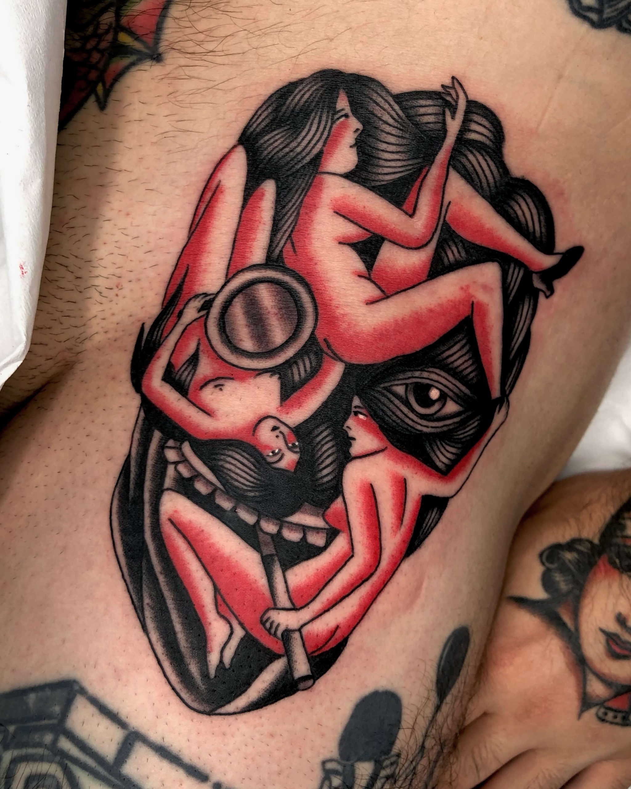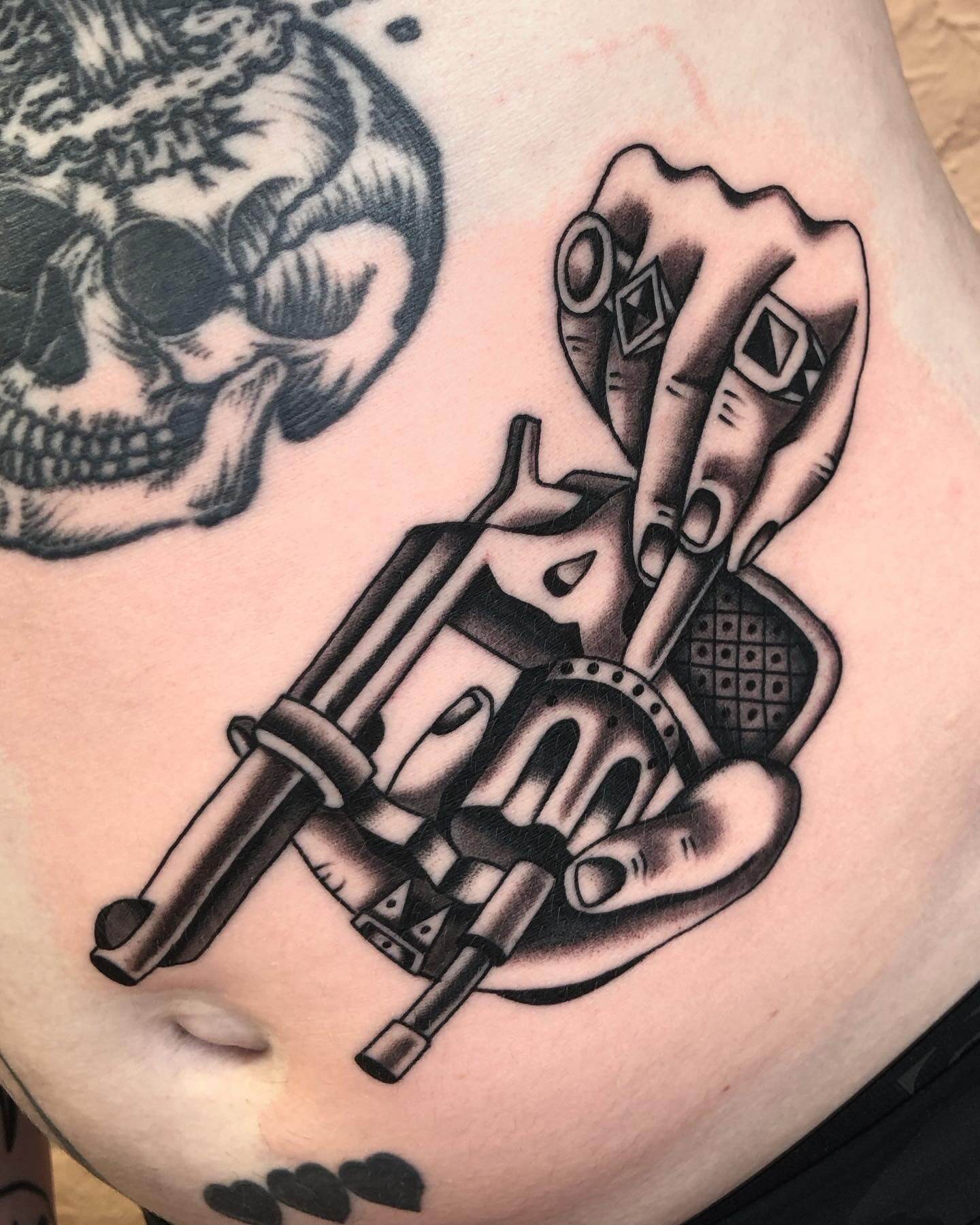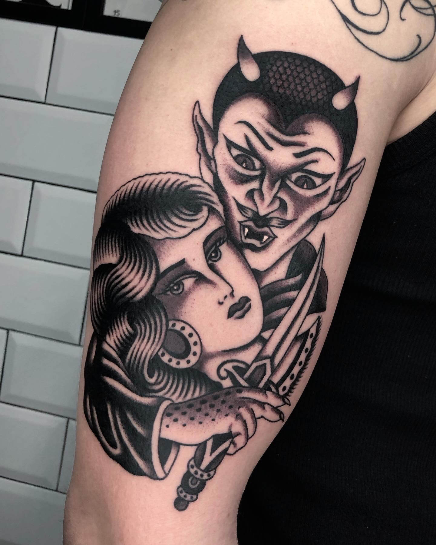 Durante su estancia en la capital británica, Matteo fusionó esa estética con su profundo amor por el tatuaje tradicional, evolucionando hacia un estilo personal que conjuga la elegancia del negro y la sutileza del gris con la esencia atemporal del tatuaje clásico. Esta combinación le permite crear obras únicas, donde la precisión y el contraste se unen para reinterpretar la tradición de una forma fresca e innovadora.