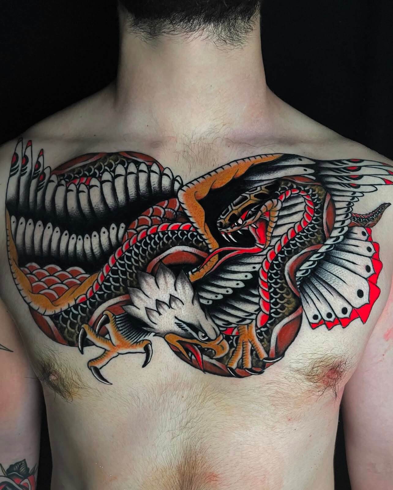 Posteriormente, su paso por Cobra Tattoo le permitió trabajar junto a talentosos tatuadores, reforzando su compromiso con el tatuaje tradicional americano. Con una marcada atracción por las ilustraciones antiguas y los flashes de tatuajes clásicos, Rafa ha desarrollado un estilo que rinde homenaje a la historia del tatuaje, fusionando la esencia del tatuaje tradicional con una visión moderna y actualizada.