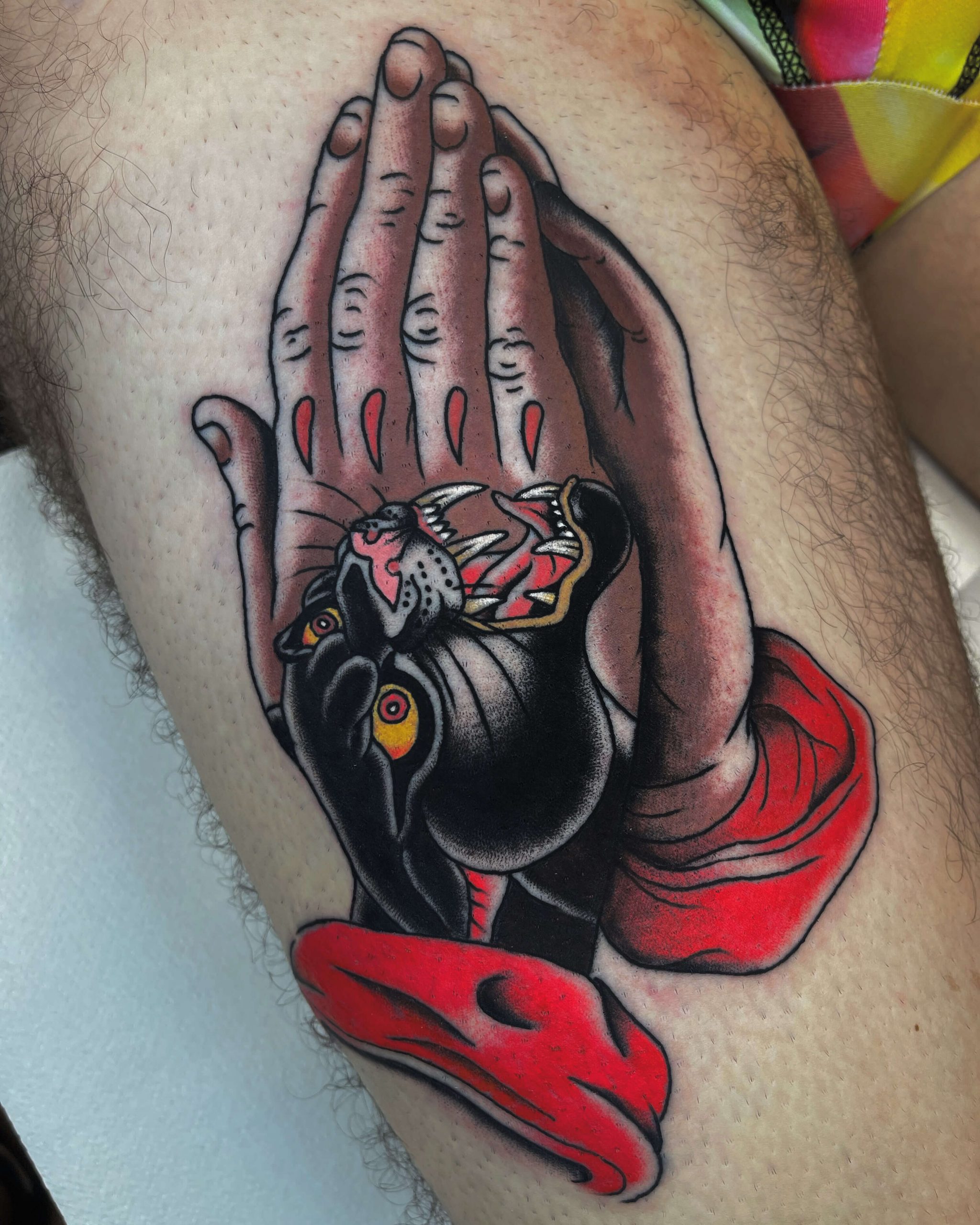 Hoy en día, su trabajo se distingue por la fusión de lo clásico y lo innovador, ofreciendo piezas únicas que capturan la autenticidad y la pasión del tatuaje tradicional en cada trazo.